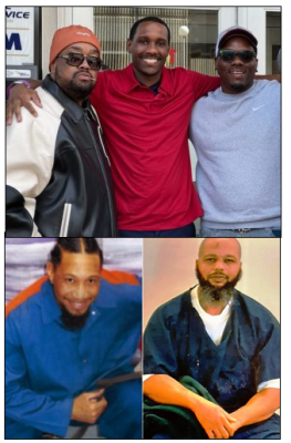 Above (l to r) exonerees George Clark, Alphonso Clark, Kevin Harrington; bottom: wrongfully convicted Marcus and Vargo Johnson also of Inkster.
