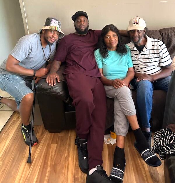 “MIKE D” DEGRAFFENRIED (2nd from l) AND FAMILY: (l to r) cousin Edward, Jr., mother Evonne, stepfather Johnny, after conviction vacated Aug. 20, 2025