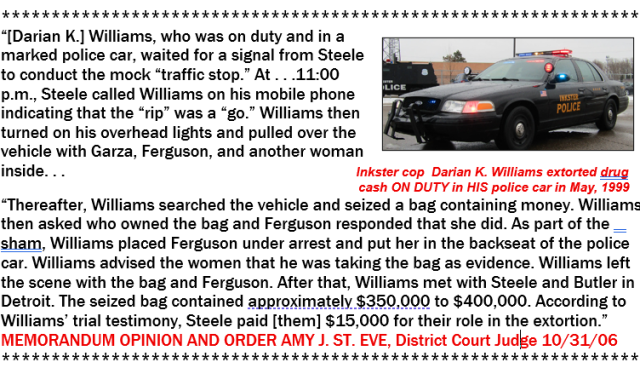 INKSTER SGT./OIC DARIAN K. WILLIAMS extorted Michigan and Illinois drug dealers during Mike D’s trial, 1999-2001, convicted by Feds 2003