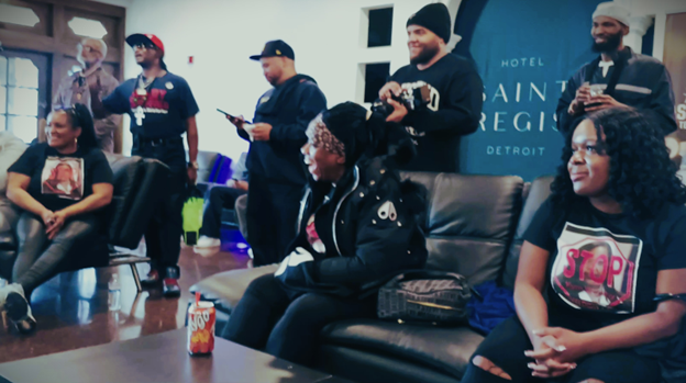 Family and friends of Ewing and Searcy flooded into the Michigan Court of Appeals (COA) Detroit offices March 10, to support the two men and oppose Worthy’s appeal, wearing T-shirts declaring “STOP KYM WORTHY.” The large turn-out of young people who condemned Kym Worthy’s ongoing “Innocence Denials” since she took office in 2oo4 was highly significant.