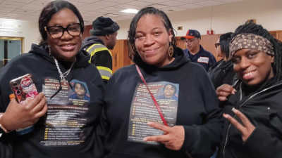 Darrell Ewing’s mother Sonya Dodson (l) and sister Ceci Ewing (r) were among dozens attending the St. Regis Hotel event after the hearing March 10.